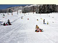 ↑ゲレンデトップ、眺望抜群の中級者向きいがぐりコース。 | | | |  ↑上級者向きのおおわしコースは、最大斜度34度。 | | |  ↑充実のスキースクール。後方はカフェテリアのあるセンターハウス。 |