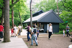 ![]() 「あずまや」で小鳥のさえずりを聞きながらテイクアブレイク | ![]() 観察小屋では、給餌台に集まる小鳥を観察することができる | ![]() 野鳥の森ガイドやイベントの受け付けを行うピッキオビジターセンター | ||||||||||||