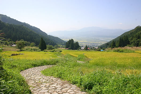 「日本の棚田百選」指定の美しい棚田 「日本の棚田百選」指定の美しい棚田 「日本の棚田百選」指定の飯山市福嶋・三部の棚田は石垣を組んだ独特の棚田風景で、 |