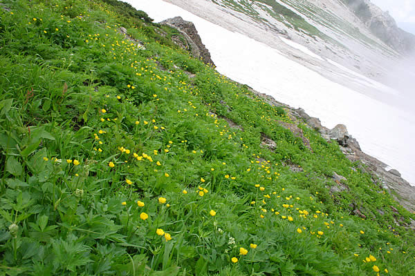 シナノキンバイの群落 (杓子岳・白馬鑓ヶ岳一帯)