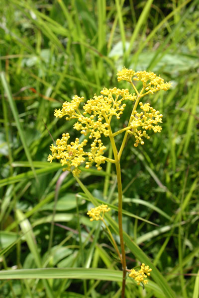 ニッコウキスゲ (7月中旬〜8月上旬) 霧ヶ峰・車山と聞けば真っ先に思い浮かぶほどシンボリックな花。ビーナスライン沿いや、八島湿原から車山へ向かう遊歩道沿いなどに広く群生し、のびやかな花の形状や明るい山吹色が高原の夏を活気づかせる。 (写真は霧ケ峰・車山肩のニッコウキスゲの群生)