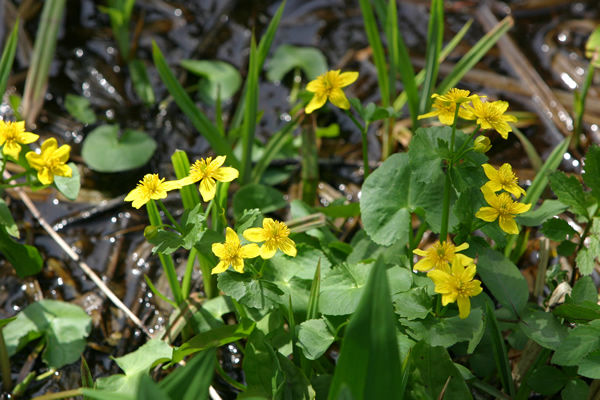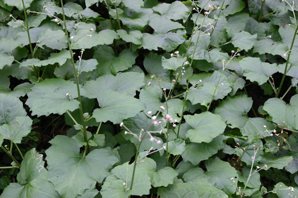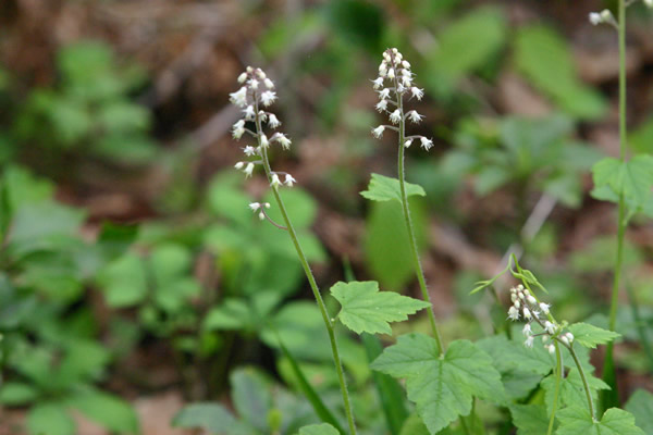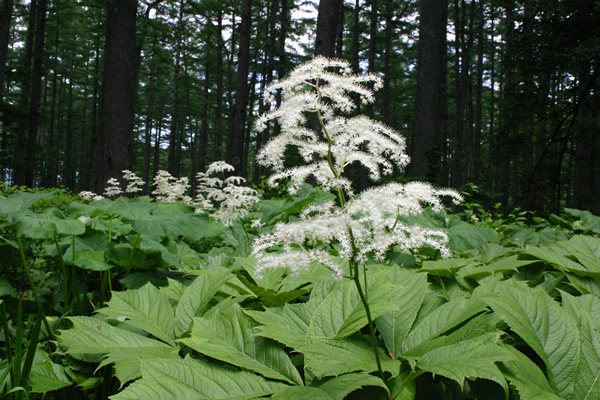 深く裂けた根生葉を持つ。茎に3枚が輪生する葉には、サンリンソウのような柄はない。5月に、白い萼片を持つ花をつける。森林植物園内の至るところで群生している。