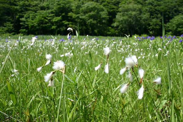 サギスゲ (沼の原湿原 6月中旬〜7月上旬) 名は、綿毛にくるまれた小穂をサギに見立てたもの。 ところどころから茎が1本ずつ出るため株をつくらない。草丈20〜50センチメートル。