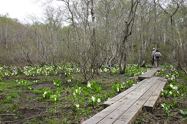 北志賀高原・カヤノ平 春から初夏にかけて、ミズバショウや ニッコウキスゲの群落が見られます |