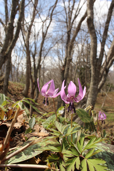 ミズバショウ開花期にやや遅れて、可憐なカタクリの花が咲き始めます。