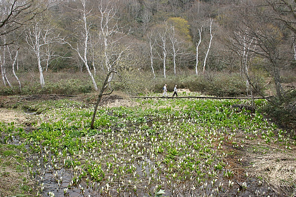 沼の原湿原・水ばしょう (斑尾高原 見頃4月下旬〜5月下旬) 標高1000mの斑尾高原沼の原湿原は、4月下旬ともなると水ばしょうや リュウキンカ、ユキツバキ、山桜などが一斉に開花。高原に遅い春の訪れを告げます。 一周約90分の遊歩道が整備され、花を愛でながらのウォーキングが楽しめます。