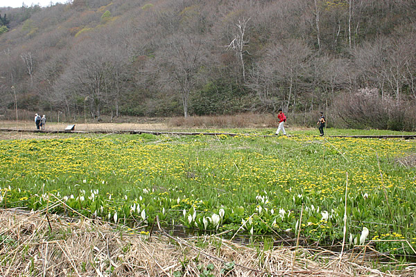 水ばしょうやリュウキンカ、ユキツバキ、山桜などが