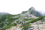 山麓のしらび平駅から61人乗りのロープウェイに乗れば、約8分で標高2612mの山頂駅へ。目の前のホテル千畳敷ホテルから出発し、まずは千畳敷カールのお花畑をグルリとひとめぐり。軽い足慣らしができたら、宝剣岳から中岳を経て木曽駒ヶ岳山頂を目指す。3000m近い頂上からは南アルプスや八ヶ岳の絶景を広々と見渡すことができ、片道2時間を登りきった達成感が胸にぐっと迫ってくる。危険箇所も少なく、家族連れでも楽しめる初心者コースだ。