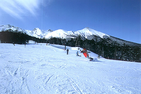 御岳ロープウェイ (冬季は営業休止) 標高2150mの雲上を行く空の旅。御岳山7合目に位置する終点・飯森駅周辺からは御岳山はもちろん北アルプスや八ヶ岳、中央アルプス、南アルプスの雄大なパノラマが。 問/御岳ロープウェイ ・0264-46-3000