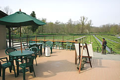 ワサビを使った料理のレストランも。レストランからはワサビ田を一望。