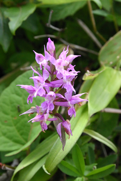 山地草本の中では大型で、高さは1mほどになる。6月下旬から7月に穂の先に白い花をつける。花茎の先端部は両性花、横に伸びる花は雄花。群生することが多く、初夏の山を代表する花の一つ。