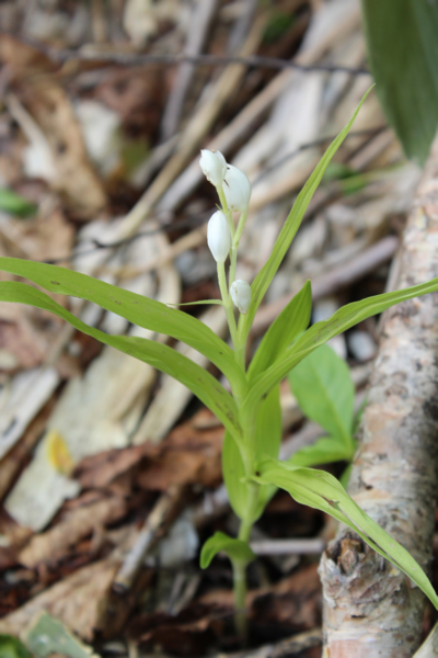 花は白から淡い紅色で、内側に薄い緑色の斑点がある。亜高山帯の暗い針葉樹林内を彩る代表的な花である。 |
