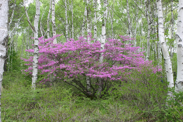 八千穂高原 初夏を彩るミツバツツジ、コナシ、レンゲツツジなどの群生地として も有名 |
